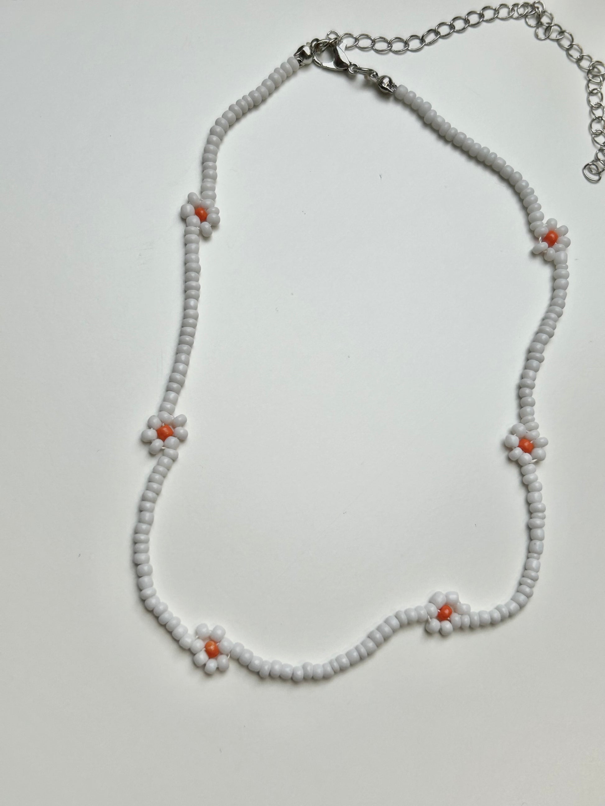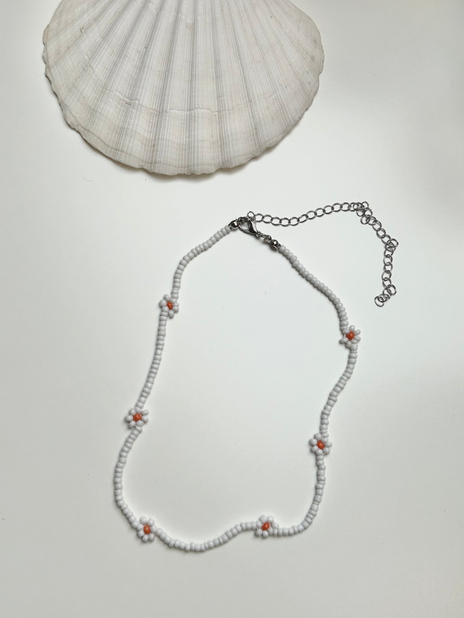 Die elegante Halskette "Bloom" bringt Farbe in Ihren Look. Der weiße Perlenschmuck ist mit weißen Blumen mit gelben Blütenstempeln dekoriert, die ein sonniges Highlight setzen. Ideal für alle Gelegenheiten! 🌻