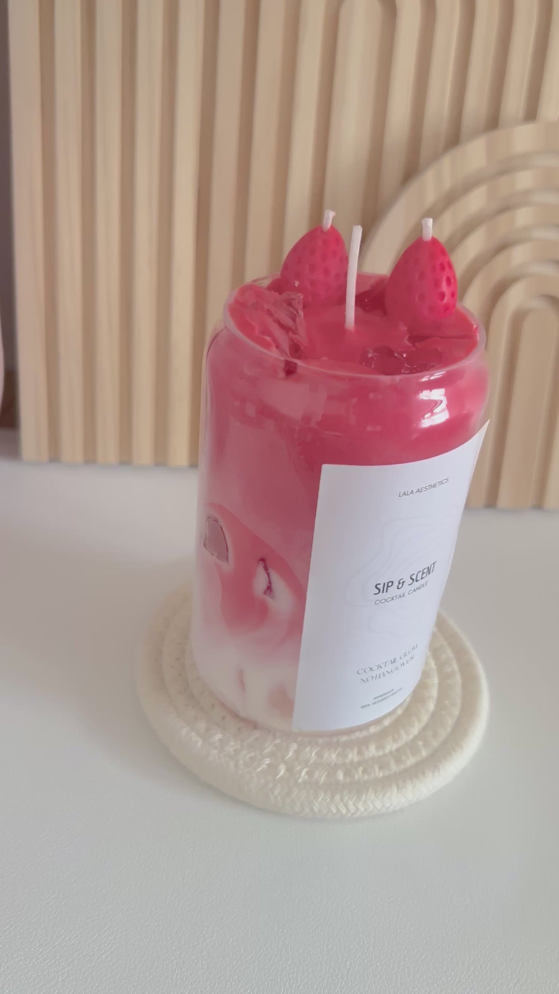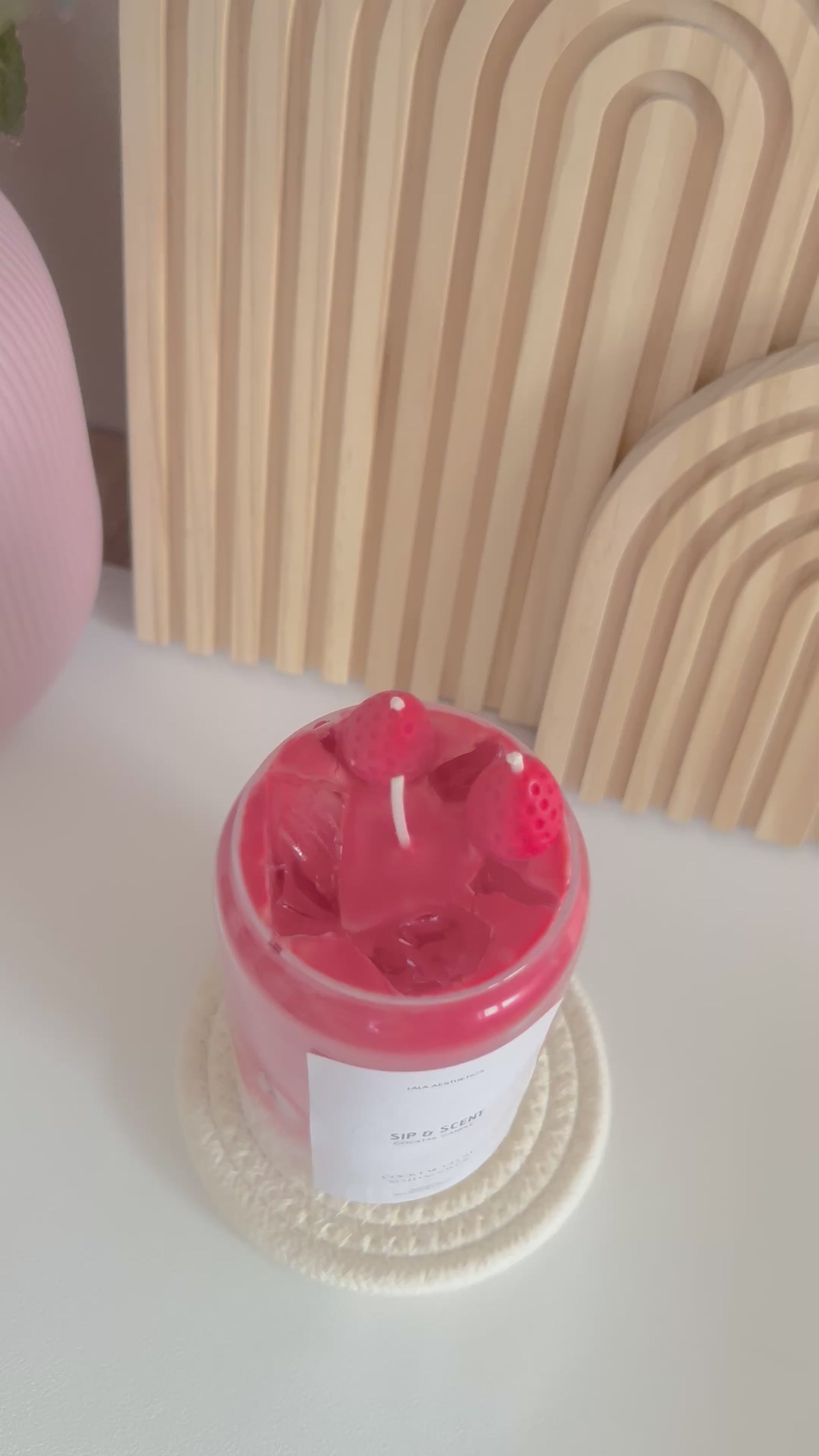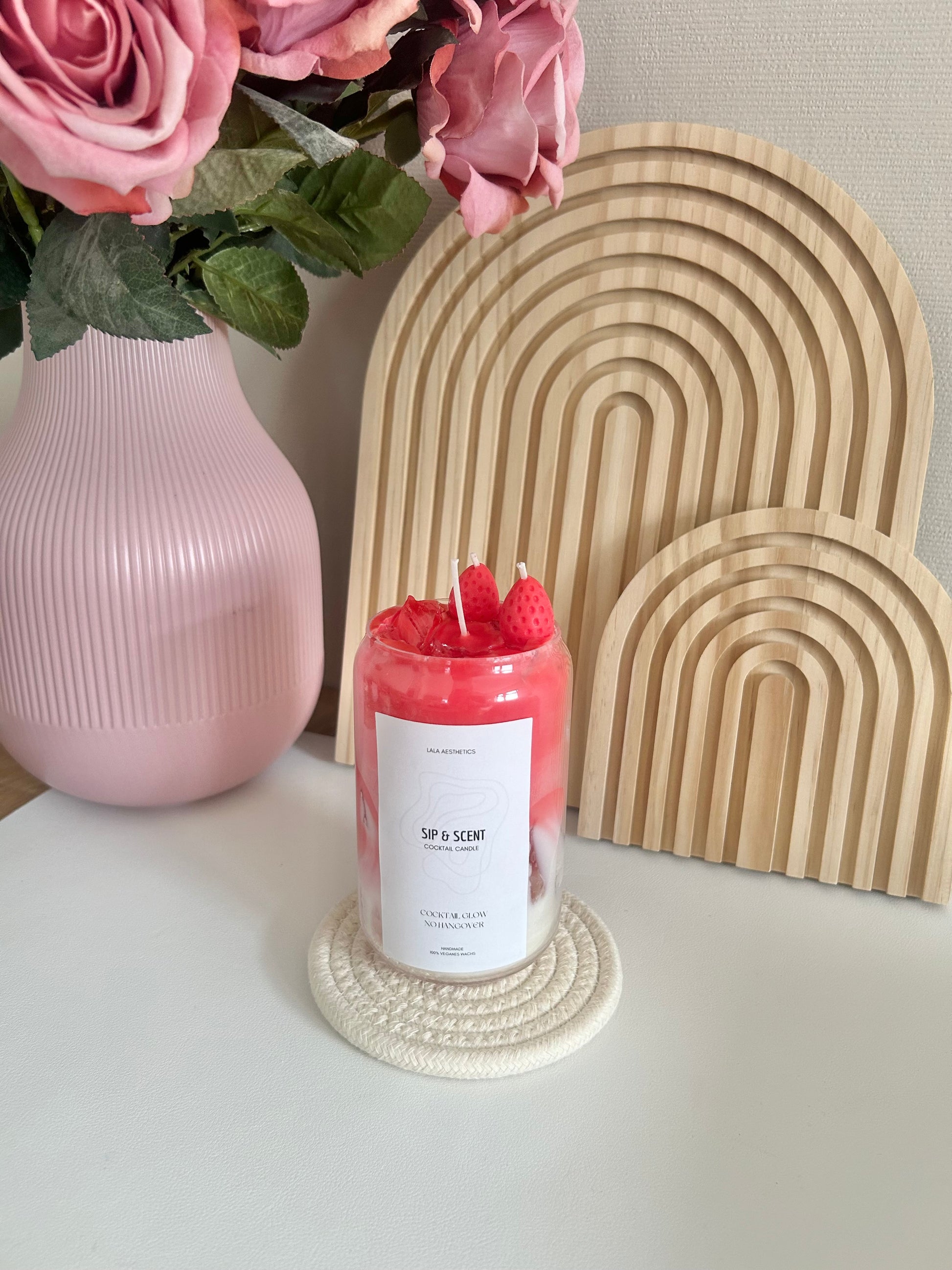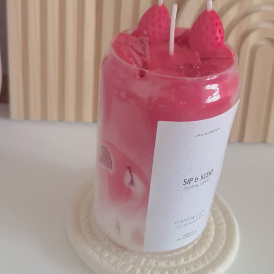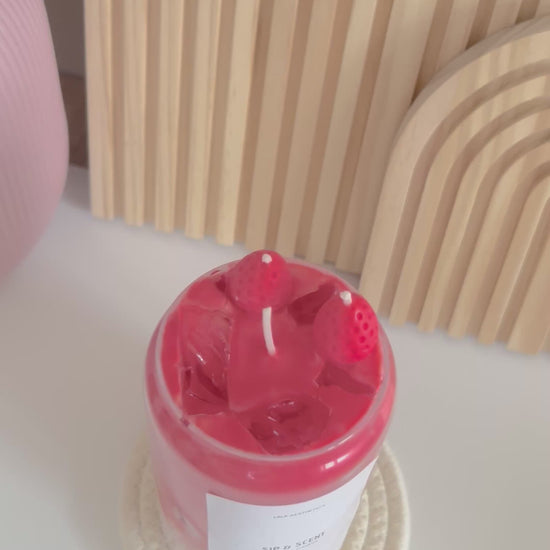 Träume mit der handgefertigten Sip&Scent Kerze "Strawberry Dream" von sommerlichen Erdbeer-Duftnoten.