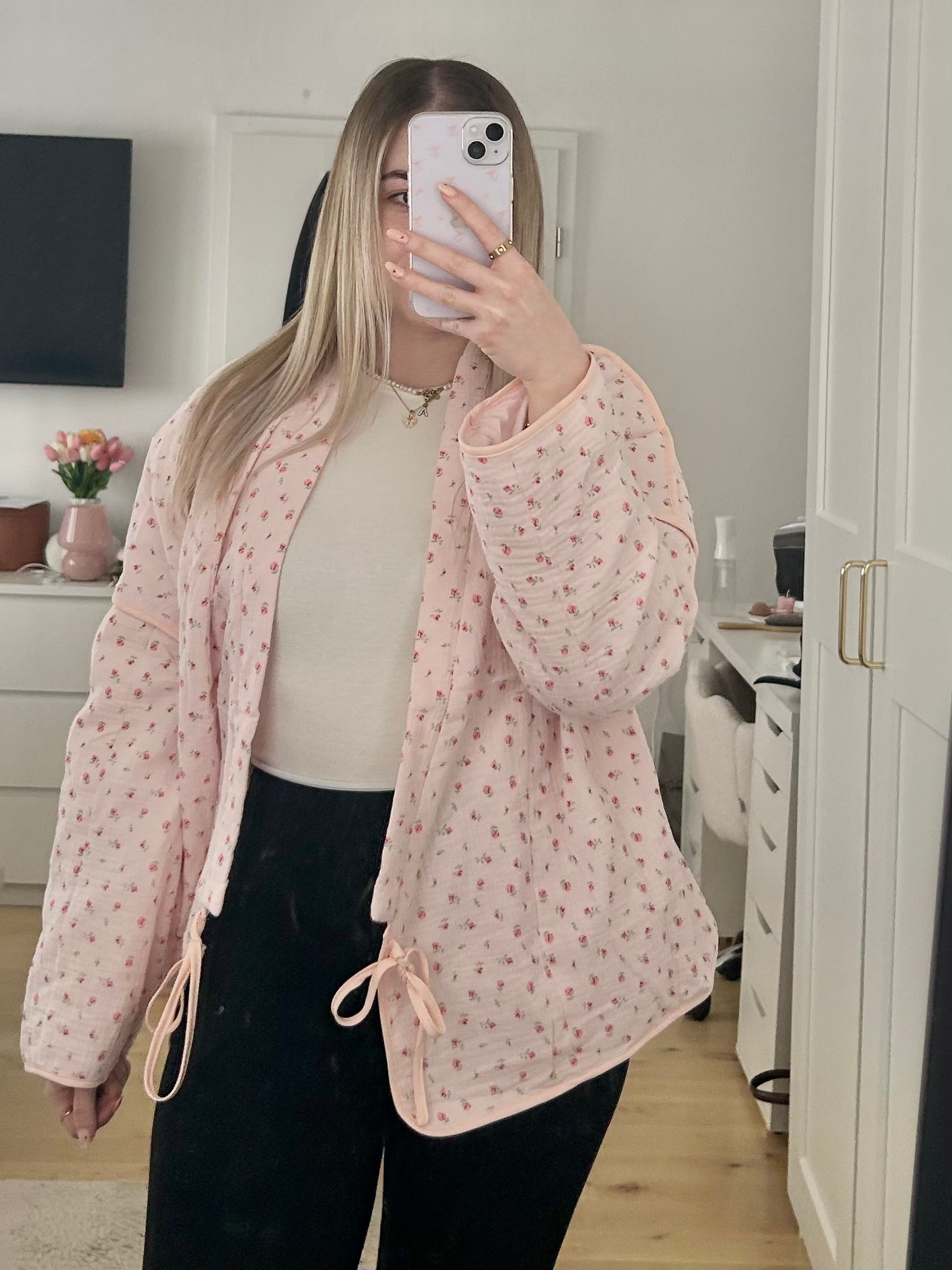 Gemütliche Blümchenjacke mit dünner Bindeschnur